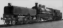 The Australian Standard Garratt was designed in 1942, for use on 3 ft 6 in (1,067 mm) gauge railways, in the critical period of World War II following the Japanese bombing of Darwin in 1942, and aerial attacks on other northern Australian centres.[55] It was a 4-8-2+2-8-4 locomotive, designed in Australia and constructed by a number of Australian railway workshops. Several design problems with the class emerged, and use of the locomotive encountered resistance from the drivers' union, especially in Queensland.[56] Most were withdrawn at the end of the war,[8] although a number continued to operate successfully in Tasmania.[57]