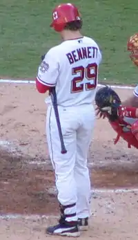 Bennett made his major league debut in 1995 for the Phillies on September 24 against the Cincinnati Reds as a pinch hitter. He was signed as a free agent by the Boston Red Sox in 1997 season and spent the season with the Pawtucket Red Sox. He returned to the Phillies organization the following year as a minor league free agent. Played most of the season with Scranton before his contract was purchased by the Phillies in September. 1998 was his first full season in the majors and he stayed with the Phillies as a backup catcher to Mike Lieberthal until he was traded to the New York Mets for fellow catcher Todd Pratt on July 23, 2001. Bennett played in one big league game for the Mets (going 1–1) before they traded him to the Colorado Rockies a month later. He stayed with the Rockies in 2002, having over 200 at-bats in a season for the first time in his major league career. He then signed free agent deals with the San Diego Padres for 2003 (where he eclipsed the 300 at-bat mark for the first time and set a career-high in RBI, with 42), Milwaukee Brewers for 2004, Washington Nationals for 2005, and St. Louis Cardinals for 2006.[1]