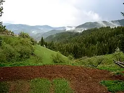 The Rilo-Rhodope geomorphological region covers the south-western regions of Bulgaria and includes the Rhodope Mountains, Rila, Pirin, Osogovo, Vlahina, Maleshevo, Ograzhden, Slavyanka and Belasitsa, as well as the valleys of the rivers Struma and Mesta.[25] The Rhodopes are the most extensive mountain range in Bulgaria, spanning an area of 14,730 km2 with an average altitude of 785 m, characterized with gentle and densely forested slopes. Their length from west to east is 249 km and reach width of 100 km.[30] The altitude decreases from west to east.[25]