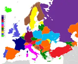Map of European countries by number of neighbouring countries.