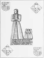 Firstly in about 1561, to Wilmota Giffard (1540/1–1581),[2][5] daughter and sole heiress of John Giffard of Yeo Vale, Alwington, North Devon, and step-daughter of Robert Cary (died 1586) of Clovelly, Devon, half-uncle to Sir George Cary. Cary was her second husband; she was previously the wife of John Bury (1540–1574) of Colleton in the parish of Chulmleigh, Devon, whom she had married when both parties were aged only 13, and contrary to ecclesiastical law. Bury was said by Pole to have been "simple",[6] and the couple were divorced in 1560 by Matthew Parker, Archbishop of Canterbury.[7] Her monumental brass survives in St Saviour's Church, Tor Mohun. Its inscription states that she had two sons and three daughters by Carey.[8] These included:[4]