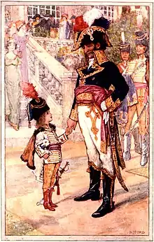Amantine Lucile Aurore Dupin, the future George Sand, was born on 1 July 1804 in Paris on Meslay Street to Maurice Dupin de Francueil and Sophie-Victoire Delaborde. She was the paternal great-granddaughter of the Marshal of France Maurice de Saxe (1696-1750), and on her mother's side, her grandfather was Antoine Delaborde, master paulmier and master birder.[6][7] She was raised for much of her childhood by her grandmother Marie-Aurore de Saxe, Madame Amantine Aurore Lucile Dupin de Francueil, at her grandmother's house in the village of Nohant, in the French province of Berry.[8] Sand inherited the house in 1821 when her grandmother died, and used the setting in many of her novels.