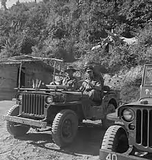 Lord Louis Mountbatten, Supreme Allied Commander South East Asia, with Major-General George Wood in a jeep during a visit to the 25th Indian Division, January 1945.