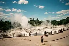![]() Thermal activity on the shore of Lake Rotomahana near the former site of the Pink Terrace |