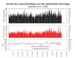 - ↑ Statistics of German Wikipedia (English)