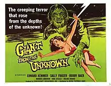Giant from the Unknown (working titles Giant from Devil's Crag and The Diablo Giant [1]) is a 1958 independently made American black-and-white science fiction-horror film drama, produced by Marc Frederic and Arthur A. Jacobs, directed by Richard Cunha, that stars Ed Kemmer, Sally Fraser, and Buddy Baer. The film was theatrically released by Astor Pictures in March, 1958 as a double feature with She Demons.