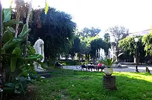 The park, with a small central fountain, originally the Villa della Marina, was dedicated in 1978[2] to the memory of the opera composer Giovanni Pacini, and has a marble bust of the composer by Giovanni Dupré, as well as two headless statues of Bourbon kings of Naples. The River Amenano, now subterranean, once emptied into the sea at this point and the site was used by laundresses washing clothes (lavandaie). The garden was once part of a seaside park, but is now distant from the water.[3][4]
