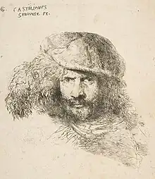 - ↑ This etching is often thought to be either a self-portrait, or a portrait of Giovanni Lorenzo Bernini