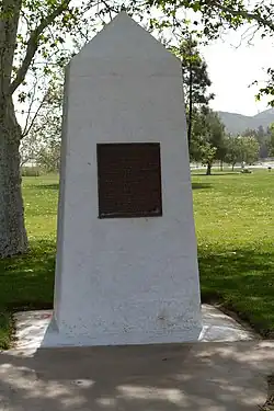 - ↑ California Historical Landmark NO. 618 GARCÉS-SMITH MONUMENT - This monument marks an old Indian trail, the Mojave Trail, used by Father Garcés in March 1776 on his trip from Needles to San Gabriel. The same trail was used by Jedediah Smith in 1826 on his first trip through San Bernardino Valley. Located on Monument Peak.