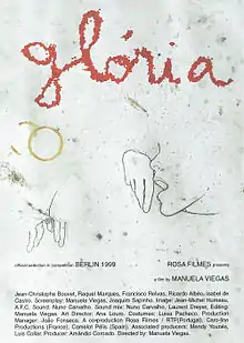 Gloria (Portuguese: Glória) is an independent Portuguese drama film directed by Manuela Viegas and written by Joaquim Sapinho, produced at Portuguese independent production company Rosa Filmes. The poster of the film was designed by Portuguese artist Julião Sarmento.