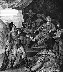 All the senior princes of Rus', including Yaroslav II of Vladimir, Daniel of Galicia, and Sviatoslav III of Vladimir, acknowledged Batu's supremacy. Originally Batu ordered Daniel to turn the administration of Galicia over to the Mongols, but Daniel personally visited Batu in 1245 and pledged allegiance to him. After returning from his trip, Daniel was visibly influenced by the Mongols, and equipped his army in the Mongol fashion, his horsemen with Mongol-style cuirasses, and their mounts armoured with shoulder, chest, and head pieces.[23] Michael of Chernigov, who had killed a Mongol envoy in 1240, refused to show obeisance and was executed in 1246.[24]