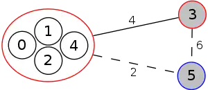 In combinatorial optimization, the Gomory–Hu tree[1] of an undirected graph with capacities is a weighted tree that represents the minimum s-t cuts for all s-t pairs in the graph. The Gomory–Hu tree can be constructed in |V| − 1 maximum flow computations. It is named for Ralph E. Gomory and T. C. Hu.