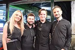 The Humans members (from left to right): Cristina Caramarcu, Alexandru Matei, Alexandru Cismaru and Alin Neagoe at a promotional event in Madrid, Spain.[20]