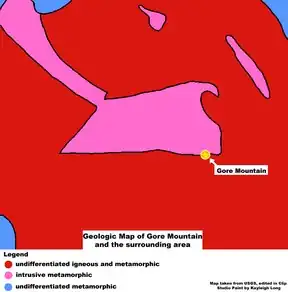 ![]() Geologic Map of Gore Mountain and the surrounding area. | |