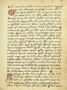 This work is a collection of sermons for Lent (Latin: Quadragesima, 'Fortieth'),[3][1] and is based on the popular work by Neapolitan 15th-century Franciscan preacher Roberto Caracciolo. According to the glagoljaši, the Kvaresimal was made on the basis of an Italian template based on a sermon by Bernardin of Siena.[2][4] In a colophon, Greblo says that he finished this work with his son-in-law Mihovil (Kalc) from Boljun.[4] The work thematically follows Greblo's first work, the Interpretation of the Passion of our Lord Jesus Christ. Greblo's calligraphy in this work is remarkable. The style is modest, and the book is hardly illuminated. Only the initials have modest decorations in red or black-red.[5][6] There are empty spaces at the end of the chapters that are filled with vignettes, in the form of "braids and rubrication made in red."[6] The binding was restored in 1959.[6][1]