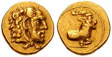 Cyprus was part of the Mycenaean civilization with local production of Mycenaean vases dating to the Late Helladic III (1400–1050 BC). The quantity of this pottery concludes that there were numerous Mycenaean settlers, if not settlements, on the island.[8] Archaeological evidence shows that Greek settlement began unsystematically in c. 1400 BC, then steadied (possibly due to Dorian invaders on the mainland) with definite settlements established in c. 1200 BC.[9] The close connection between the Arcadian dialect and those of Pamphylia and Cyprus indicates that the migration came from Achaea.[10] The Achaean tribe may have been an original population of the Peloponnese, Pamphylia, and Cyprus, living in the latter prior to the Dorian invasion, and not a subsequent immigrant group; the Doric elements in Arcadian are lacking in Cypriot.[10] Achaeans settled among the old population, and founded Salamis.[11] The epic Cypria, dating to the 7th century BC, may have originated in Cyprus.[12]