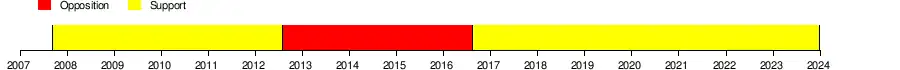 In early 2014 the ZS had signed political cooperation with the New Democratic Party, a political fraction of the Democratic Party led by its former leader and the nation's president Boris Tadić. Originally agreeing to form a political cooperation and jointly go at the forthcoming 2014 elections, by mid-February 2014 the NDS had collectively joined the Greens, who chose a new Statute, program and Tadić as their party leader, officially preregistering under the name New Democratic Party–Greens. On 14 June 2014, the New Democratic Party seceded and became independent political party, so the name of the party was changed again to "Greens of Serbia". Since 2016, it has allied itself with the Socialist Party of Serbia and United Serbia.