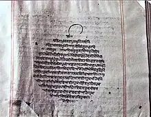 Opening page of a Guru Granth Sahib manuscript with the text contained in an undrawn circular boundary, from the Rawalpindi Collection
