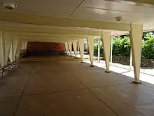 After World War II, enrolment at the school increased above the previous peak of 327 students, resulting in further buildings.[50] Two were added to the school in the late 1940s-early 1950s. The first was a War Memorial Pavilion, sited on the north side of Hangar Oval, which was opened on 27 August 1949 by the Queensland Governor, Sir John Lavarack (the pavilion was demolished in 2010).[51][52][1]