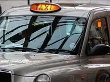 A hackney or hackney carriage (also called a cab, black cab, hack or London taxi) is a carriage or car for hire.[5] A hackney of a more expensive or high class was called a remise.[6] A symbol of London and Britain, the black taxi is a common sight on the streets of the UK.[7] The hackney carriages carry a roof sign TAXI that can be illuminated to indicate their availability for passengers.[8]