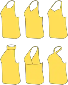 Halterneck is a style of women's clothing strap that runs from the front of the garment around the back of the neck, generally leaving the upper back uncovered.[1] The name comes from livestock halters.[2] The word "halter" derives from the Germanic words meaning "that by which anything is held".[3] Halter is part of the German word for bra, Büstenhalter.