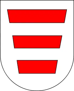 Hamade[lower-alpha 1] is an heraldic ordinary in the shape of three bars placed one under another, not touching the edges of the field.[1] The bars can be of equal length or have the top bar longer than the bottom one. They can have straight edges, or skewed edges, with their base being shorter than their top.[2]