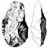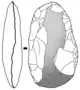 - Partial biface—The cortex is present on the tool's base and central part. The overall area that is not knapped may extend to up to 2/3 of its length.