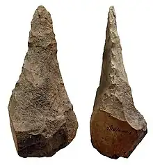 - ↑ Camps, Gabriel (1981). "Les Bifaces". Manuel de recherche préhistorique (in French). Paris: Doin Éditeurs. p. 59. ISBN 978-2-7040-0318-1.