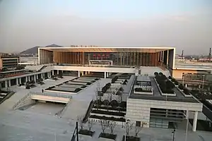 Xiaoshan railway station (simplified Chinese: 萧山站; traditional Chinese: 蕭山站; pinyin: Xiāoshān zhàn) opened in 1992.[1] Xiaoshan station was renamed Hangzhou South station on January 1, 2010.[2] The station closed for renovation work on July 1, 2013, when Hangzhou East railway station opened. The metro station on the newly built Metro Line 5, which connects the railway station with Xiaoshan District, downtown, northern and western Hangzhou, opened on June 30, 2020. The rebuilt railway station reopened on July 1, 2020.[3]