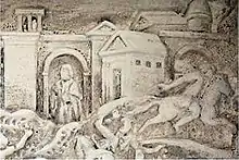 The ancient Assyrians called the city Huzirina.[16] Ḫarrānu was Hellenised to Kárrhai (Kάρραι)[17] in the Hellenistic period.[18] The Romans later Latinised the Greek name into Carrhae.[18][19] Due to the prominence of both Harran and Carrhae in historical literary sources, some scholars use the compound name "Carrhae-Harran" for the ancient city.[20] Under the Byzantine Empire, the city continued to be called Carrhae (Kάρραι) but was also sometimes referred to as Hellenopolis (Eλληνóπoλις),[17] "city of the [pagan] Greeks", in reference to the strong pagan traditions there.[4][10]