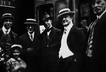 Left to right: Theodore Hardeen with his son, Joe Hyman, Harry Day, Lord Northcliffe and C. Dundas Slater.