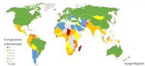 Forty-five million Iranians face inadequate nutrition according to Iranian officials.[6] Kohgiloyeh and Boyerahmad, Sistan-Baluchistan, Hormozgan, Kerman and Khuzestan as provinces that face malnutrition or food insecurity.[6]