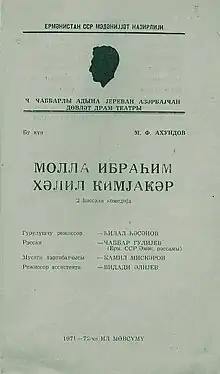 Hekayati Molla Ibrahim-Khalil Kimyagar (Azerbaijani: Hekayəti-Molla İbrahim Xəlil kimyagər, English: Story of chemist Mullah Ibrahim-Khalil ) is the first comedy of the Azerbaijani writer and playwright Mirza Fatali Akhundov, written in 1850[1] in the Azerbaijani language.[2]