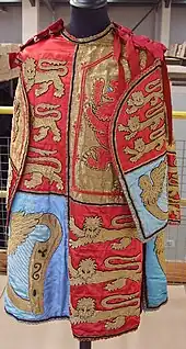 - ↑ Similar tabards are also worn by Officers Extraordinary, who are not formally members of the College of Arms, but take part in ceremonial occasions. Scottish heralds under the authority of Lord Lyon King of Arms also wear tabards, but these display the current royal arms of Scotland.