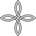 A heraldic knot (referred to in heraldry as simply a knot) is a knot, unknot, or design incorporating a knot used in European heraldry.[1] While a given knot can be used on more than one family's achievement of arms, the family on whose coat the knot originated usually gives its name to the said knot (the exception being the Tristram knot). These knots can be used to charge shields and crests, but can also be used in badges or as standalone symbols of the families for whom they are named (like Scottish plaids). The simplest of these patterns, the Bowen knot, is often referred to as the heraldic knot in symbolism and art outside of heraldry.