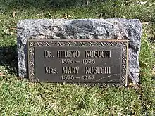 The footstone of Hideyo Noguchi in Woodlawn Cemetery, New York City