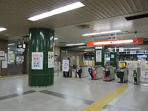 Higashi-Sapporo Station (東札幌駅, Higashi-Sapporo-eki) is a Sapporo Municipal Subway station in Shiroishi-ku, Sapporo, Hokkaido, Japan. The station number is T12. The station name means "East Sapporo".