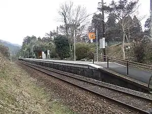 The station is served by the Kitto Line and is located 13.5 km from the starting point of the line at Miyakonojō.[3]
