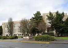 In 1929, a new high school building was finished with additional buildings and the wings added later.[9] The neighboring Cornelius school district was dissolved in 1960, and part of their enrollment area was shifted to the Hillsboro districts, while the remainder went to the Forest Grove School District.[17]