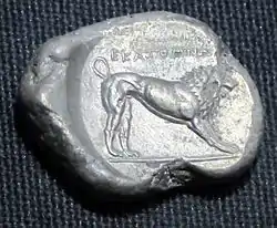 Although the Persian Empire had official control of the Carians as a satrap, the appointed local ruler Hecatomnus took advantage of his position. He gained for his family an autonomous hand in control of the province by providing the Persians with regular tribute, avoiding the look of deception. His son Mausolus continued in this manner, and expanded upon the groundwork laid by his father. He first removed the official capital of the satrap from Mylasa to Halicarnassus, gaining a strategic naval advantage as the new capital was on the ocean. On this land he built a strong fortress and a works by which he could build up a strong navy. He shrewdly used this power to guarantee protection for the citizens of Chios, Kos, and Rhodes as they proclaimed independence from Athenian Greece. Mausolus did not live to see his plans realized fully, and his position went to his widow Artemisia. The local control over Caria remained in Hecatomnus's family for another 20 years before the arrival of Alexander the Great.[16]