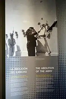 José Figueres Ferrer's symbolic act of the army's abolition on December 1st, 1948 at Cuartel Bellavista, today the Museo Nacional de Costa Rica.