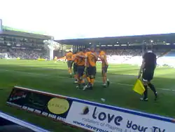 Plymouth's players celebrate a goal in the 1–2 win at Crystal Palace in 2008, which was scored by Paul Gallagher