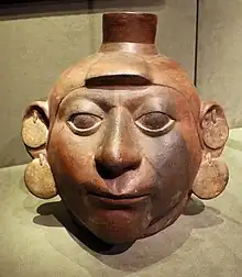 The Moche thrived on the north coast of Peru between the first and ninth century CE.[41] The heritage of the Moche comes down to us through their elaborate burials, excavated by former UCLA professor Christopher B. Donnan in association with the National Geographic Society.[42]