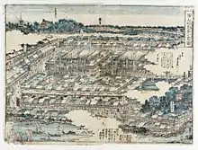 This period was marked by continuous growth which was interrupted by natural disasters, including fires, earthquakes and floods. Fires were so commonplace that they came to be called the "blossoms of Edo".[5] In 1657, the Great Fire of Meireki destroyed much of the city;[6] and another disastrous fire in 1668 lasted for 45 days.[7]