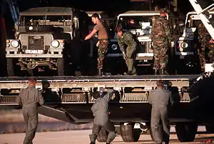 Landrovers for use by UNTAG being unloaded in Namibia.