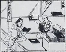 Japanese bookseller from the Jinrin kinmo zui (An Illustrated Encyclopedia of Humanity) from 1690