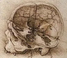 Work by Andreas Vesalius on human cadavers found problems with the Galenic view of anatomy. Vesalius noted many structural characteristics of both the brain and general nervous system during his dissections.[12] In addition to recording many anatomical features such as the putamen and corpus callosum, Vesalius proposed that the brain was made up of seven pairs of 'brain nerves', each with a specialized function. Other scholars furthered Vesalius' work by adding their own detailed sketches of the human brain.