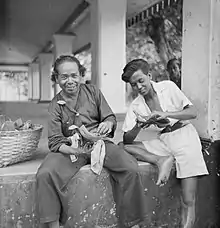 Two TNI personnel from Hizbullah eating at the evacuation center in Bangil, 1948