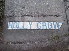 The Greater New Orleans Community Data Center defines the boundaries of Hollygrove as highway I-10 to the north, Carrollton Avenue to the east, South Claiborne Avenue to the south, and Monticello Avenue to the west.[4] The New Orleans City Planning Commission defines the boundaries of Hollygrove as these streets: Palmetto Street, Cambronne Street, Edinburgh Street, Forshey Street, Fig Street Leonidas Street, South Claiborne Avenue and the Monticello Canal. The Neighborhood defines its boundaries as S. Carrolltonn, S. Claiborne, Monticello (at the canal, Orleans/Jefferson Parish line) and Airline Highway.[5][6][7] Earhart Blvd. runs through the neighborhood.