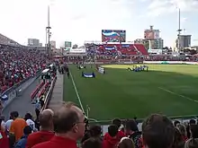Players lining up during the national anthem prior to the qualifying match against Canada on June 12, 2012, at BMO Field